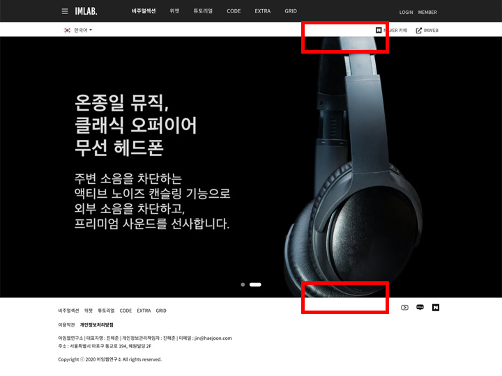 비주얼섹션은 웹사이트의 독자성을 표현하거나, 중요한 정보(이벤트, 행사 등)를 전달할 때 유용하지만, 텍스트와 이미지를 원하는 위치에 배치하기 어려운 점이 있습니다. 그 이유는 비주얼섹션에 포함되는 이미지가 섹션의 배경으로 처리되어, 브라우저 크기에 따라 이미지의 상하 또는 좌우 일부가 잘릴 수 있기 때문입니다.