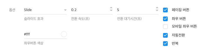 (선택 사항) 옵션 항목의 각종 옵션을 수정해, 전환 효과 및 속도, 각종 표시요소를 설정합니다.