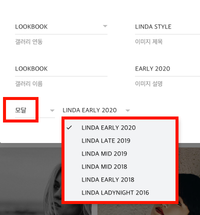 같은 방법으로 남은 대표 이미지도 마우스 클릭 후 모달 링크를 연결해 줍니다.