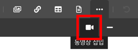 텍스트 도구에서 파일첨부 아이콘 오른쪽의 더보기 아이콘을 클릭한 다음 동영상 삽입 아이콘을 클릭합니다.