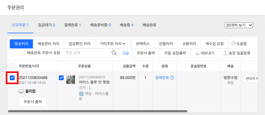 이 도움말에서는 구매자가 배송방법으로 방문수령을 선택했을 때 강제 배송완료 처리하는 방법을 설명합니다.