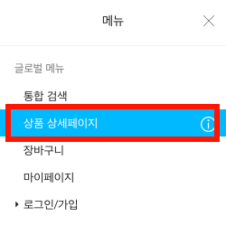 글로벌 메뉴의 상품 상세페이지 메뉴를 클릭합니다.