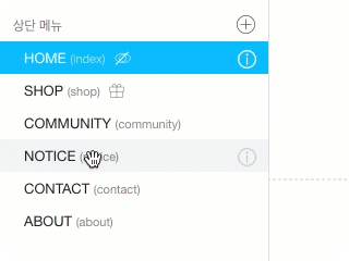 참고: 캠페이너스에서는 메뉴 관리 창에서 메뉴를 최상단에 배치하는 경우, 해당 메뉴는 첫 메뉴로 설정됩니다. 메인페이지 변경 방법