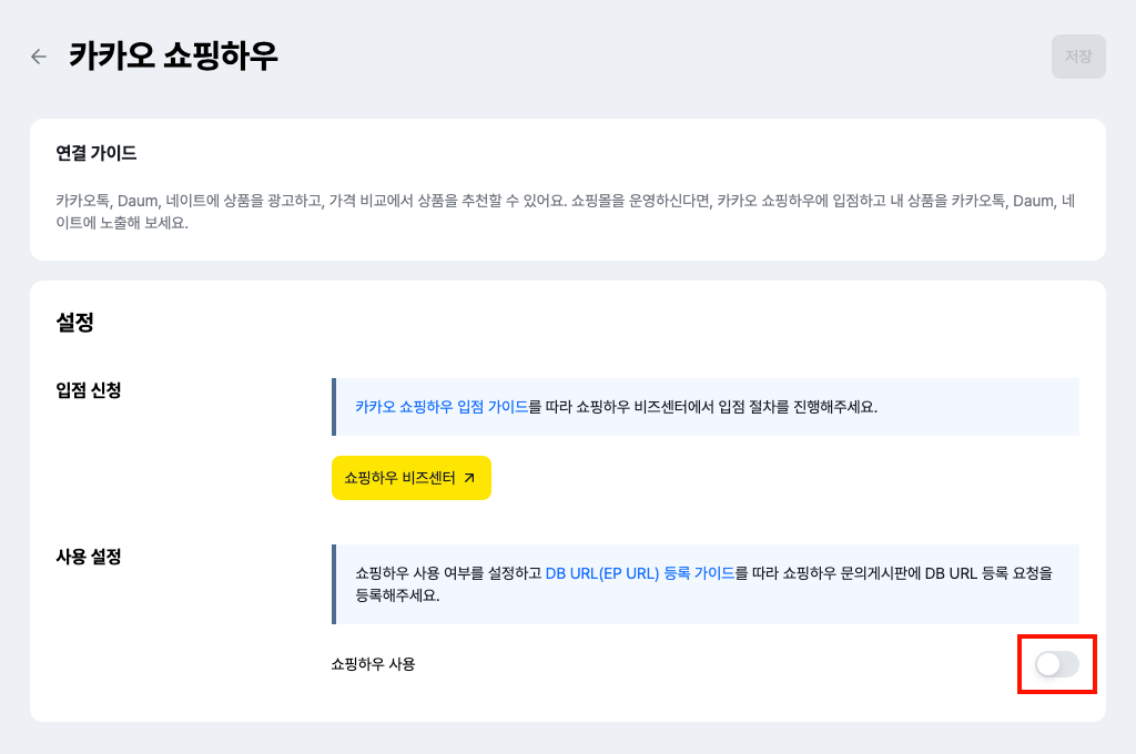 설정 에 사용 설정 항목에서 쇼핑하우 사용 옵션 토글을 클릭해 켭니다.