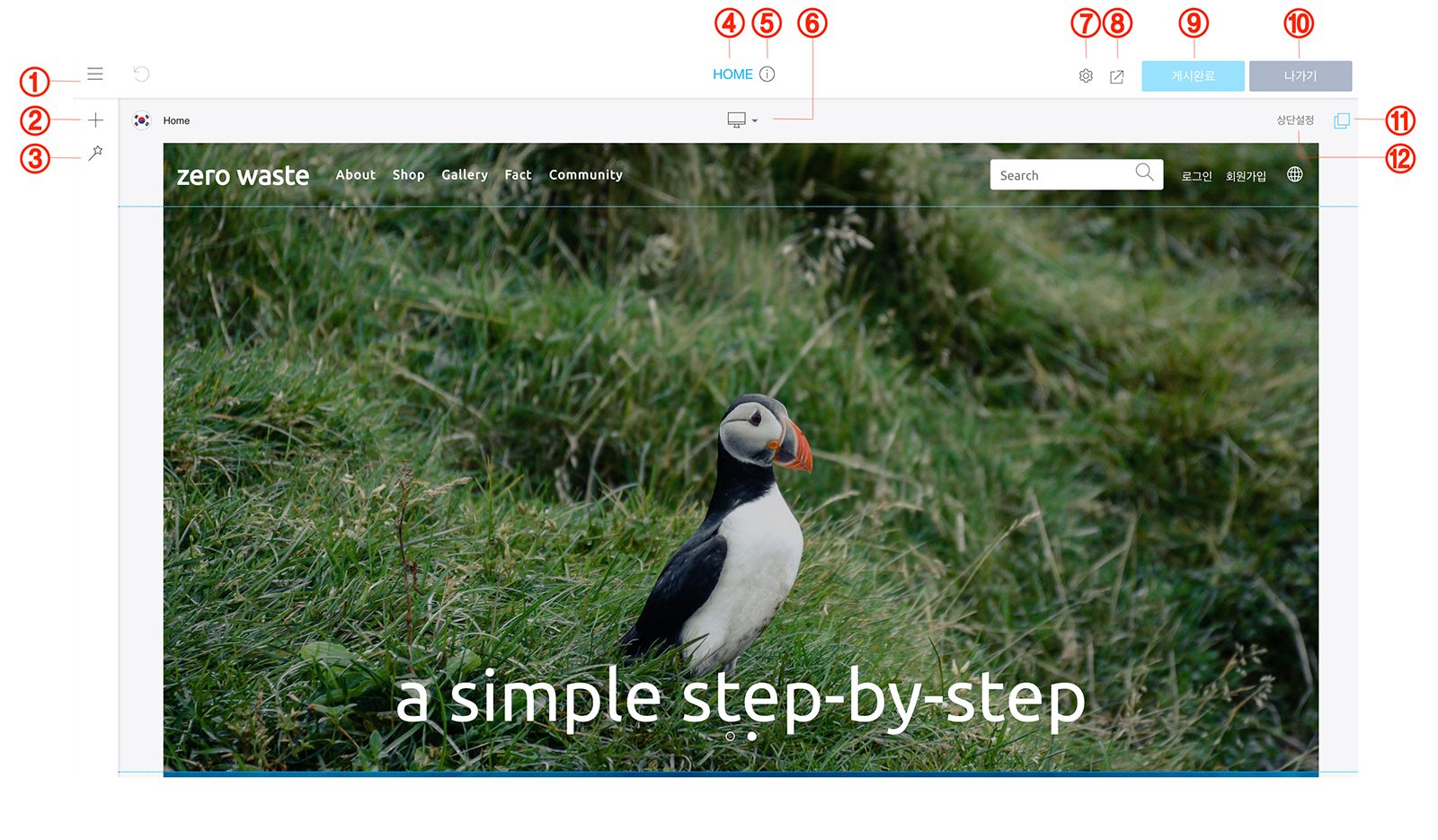9 | 게시하기 | 게시하기를 누르면 방문자들이 작업한 사항을 볼 수 있도록 반영합니다. |