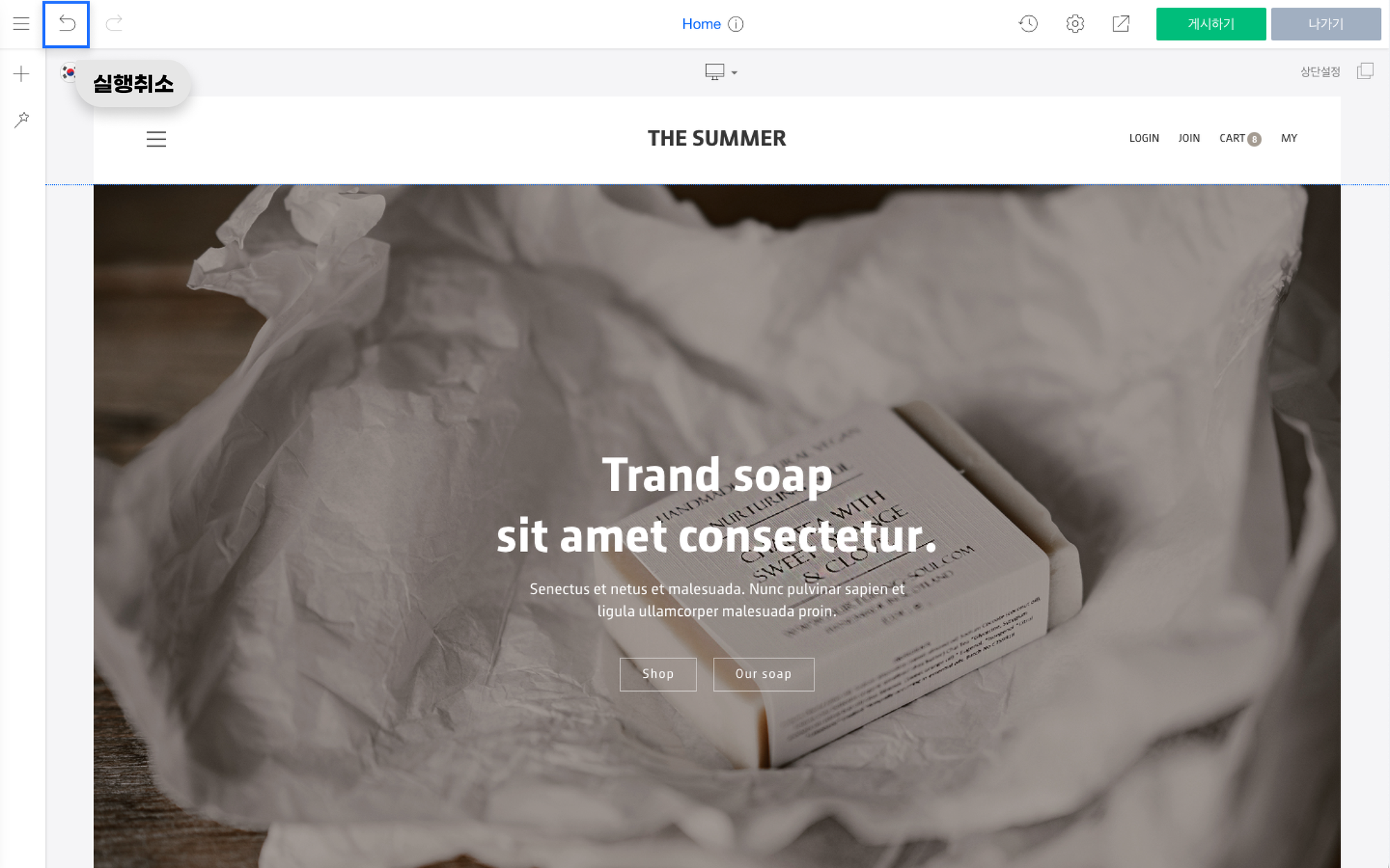 섹션 설정에서 배경 이미지 변경 등의 섹션 설정 후, 이전 배경 이미지로 되돌리고 싶을 때 실행취소가 가능해요.