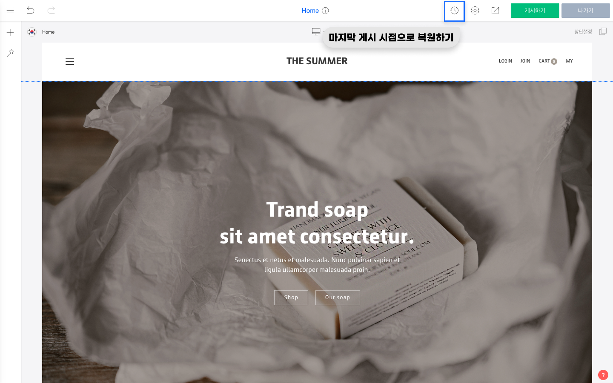 디자인 모드에서 사이트 디자인을 편집하다가 이전으로 돌아가고 싶었던 적 있으셨죠?