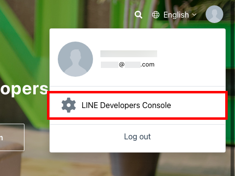 오른쪽 상단의 프로필 아이콘을 클릭하고, LINE Developers Console을 클릭합니다.