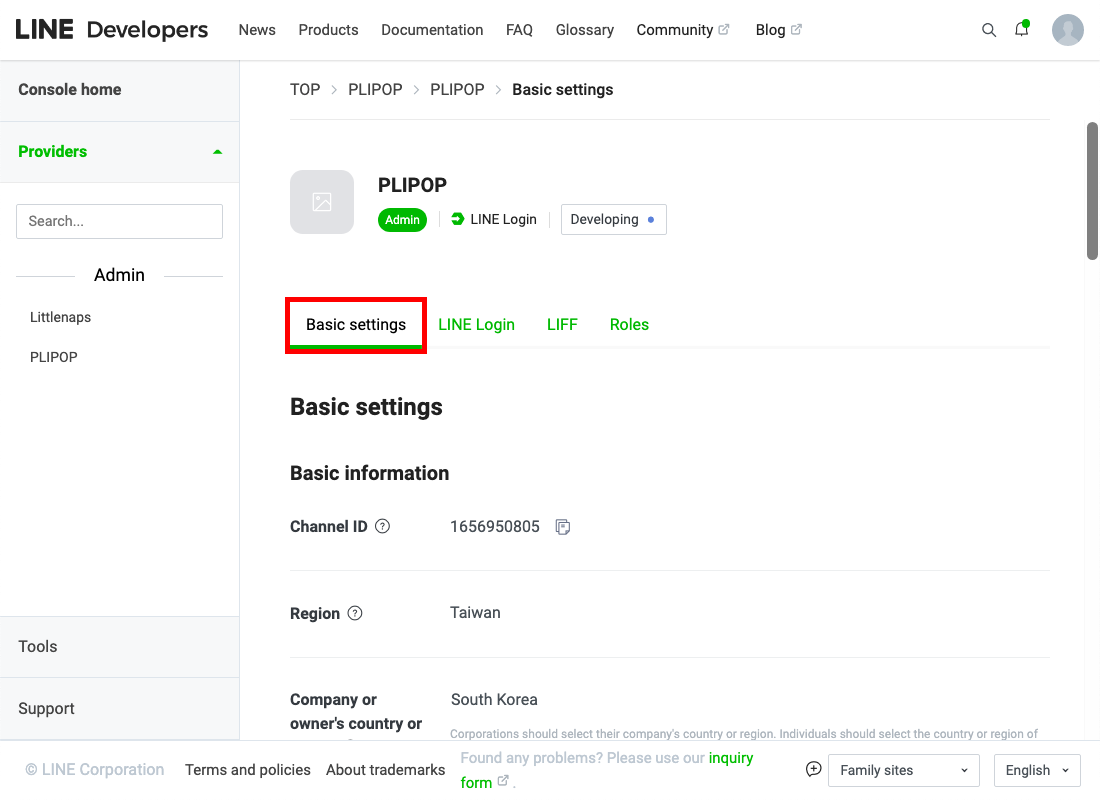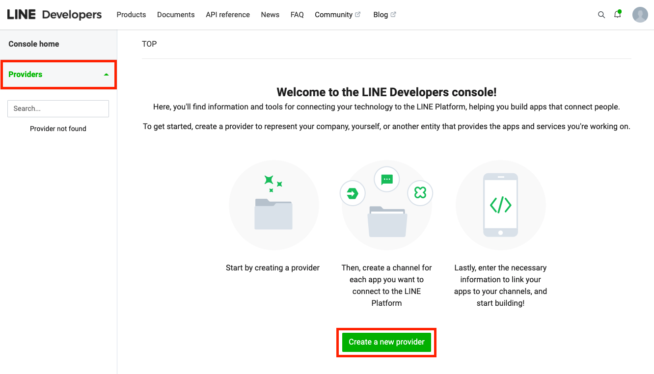 LINE Developers에 접속합니다.