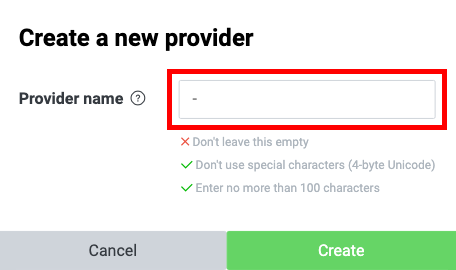 Providers 메뉴에서 Create a new provider 버튼을 클릭합니다.