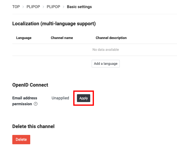 마우스 휠 스크롤을 내려 OpenID Connect 항목으로 이동 후, Email address permission 에서 Apply 버튼을 클릭합니다.