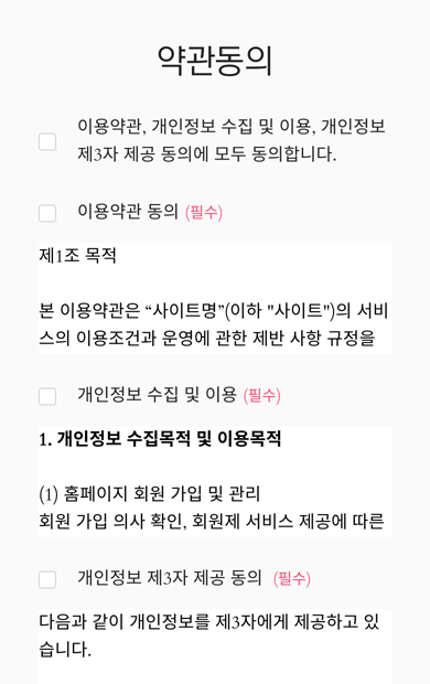 실제 본인 사이트의 약관동의 화면을 캡쳐하여 사용해 주세요.