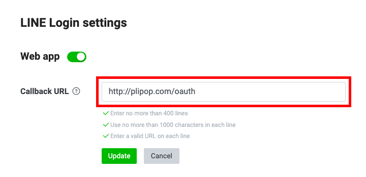 참고: 캠페이너스 다국어사이트 사용자는 LINE 로그인을 사용하는 모든 언어 사이트 도메인을 입력해 주세요.