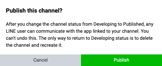 개발 상태 변경 확인 창이 나오면 Publish 를 클릭합니다.