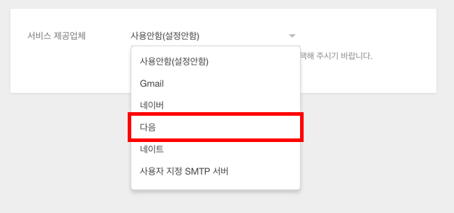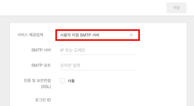 서비스 제공업체 항목에서 사용자 지정 SMTP 서버 를 선택합니다.