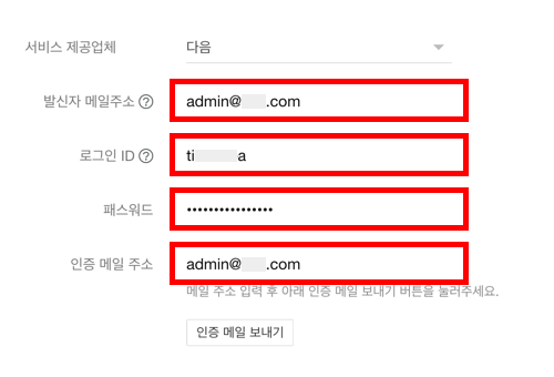 발신자 메일주소: Daum 스마트워크 개인 도메인 메일 주소 입력
