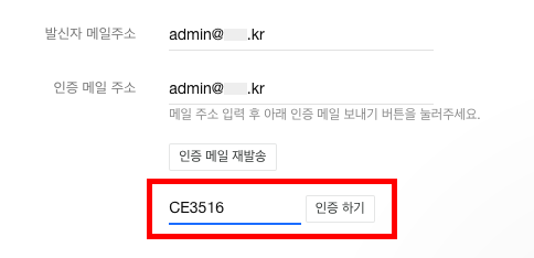 인증 메일 주소: Daum 스마트워크 개인 도메인 메일 주소 입력