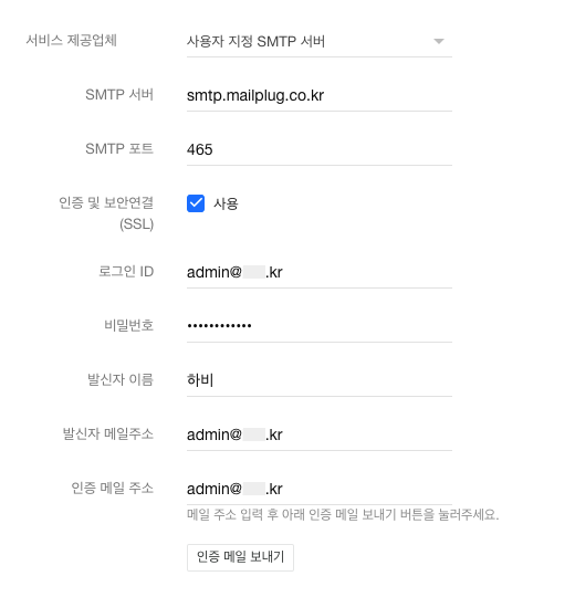 smtp.mailplug.co.krSMTP 포트:
