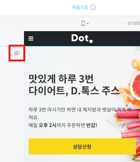 섹션마다 왼쪽 상단에 표시된 숨김 아이콘(눈 아이콘)을 클릭합니다.