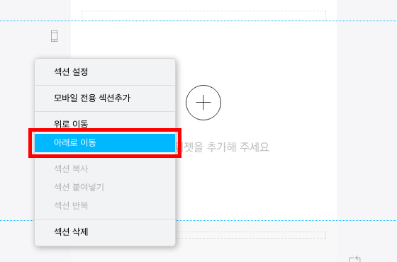 컨텍스트 메뉴가 나오면 모바일 전용 섹션추가를 클릭합니다.