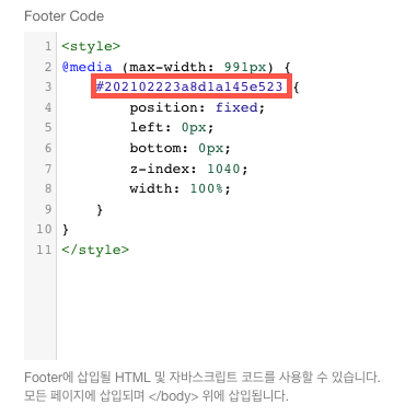Footer Code 항목에 아래의 소스 코드 전체를 복사하여 추가로 붙여넣습니다.