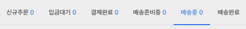 상단의 배송중 탭 메뉴를 클릭합니다.