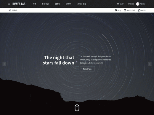아이콘 클릭 시 비주얼섹션 바로 아래 위치한 섹션으로 이동하도록 섹션 링크(앵커)를 삽입할 수 있습니다.
