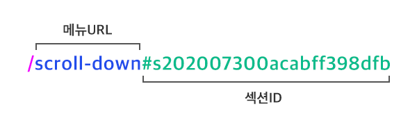 /를 입력하고, 현재 메뉴URL을 입력합니다. 이후 띄어쓰기 없이, 위 2단계에서 복사한 섹션ID 값을 붙여넣습니다. 메뉴URL 확인방법
