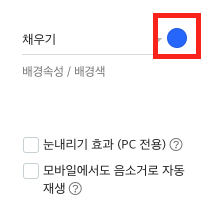 배경속성 / 배경색 항목에서, 컬러픽커를 클릭해, 원하는 배경색을 지정합니다.