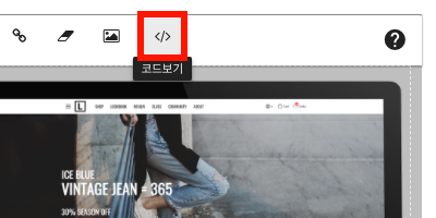 텍스트 편집도구에서 코드보기 아이콘을 클릭합니다.