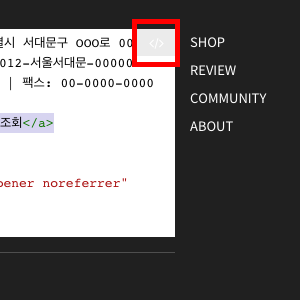 코드 보기 에디터로 전환되면 아래의 코드를 복사해 붙여넣습니다.