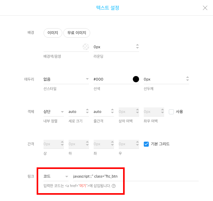 링크 입력 칸에 위에서 복사한 코드를 붙여넣습니다.