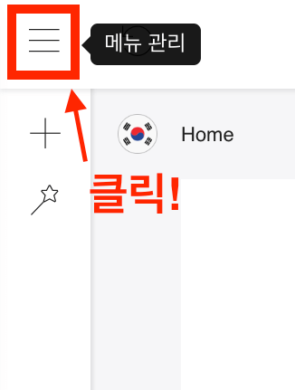 디자인 모드> (왼쪽 윗부분)메뉴 관리를 클릭합니다.
