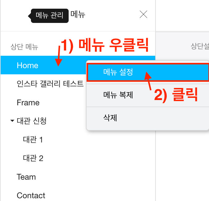 메뉴 설정을 클릭합니다.