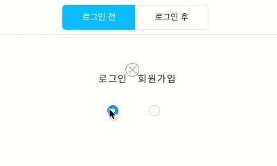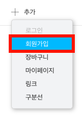 로그인/장바구니 위젯은 로그인 전과 로그인 후 설정을 따로 해줘야 합니다. 이 단계에서는 로그인 전에 보여줄 메뉴로 로그인과 회원가입 버튼을 표시하는 과정을 설명합니다.