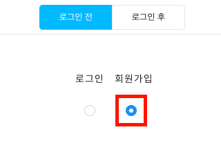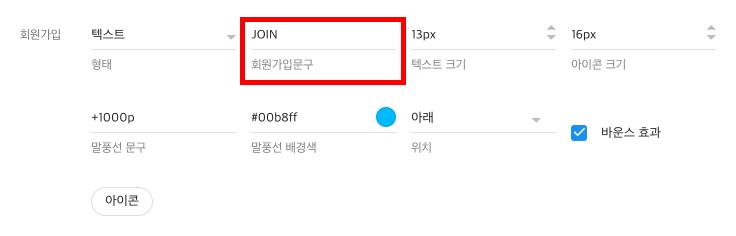 하단에 회원가입 옵션이 나타납니다. 필요에 따라 회원가입 문구를 변경합니다.