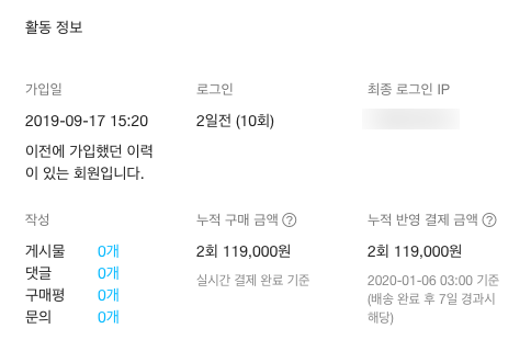 사용자(회원)의 활동 정보를 확인할 수 있습니다.