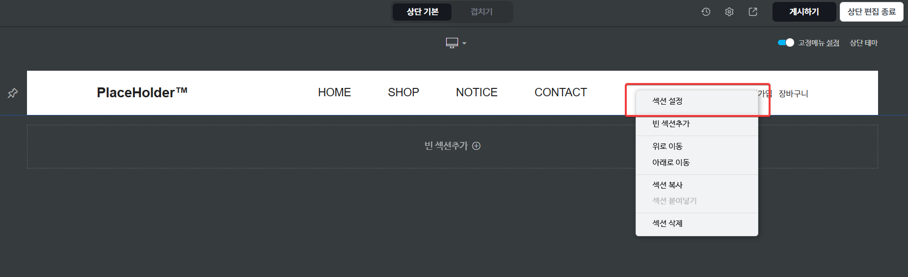 섹션 설정 창 바깥 영역을 클릭해 설정을 완료합니다.