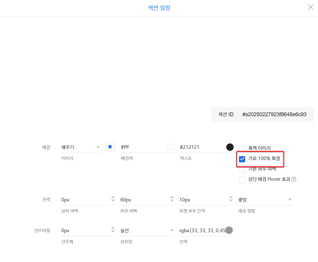 상단 영역을 브라우저 너비에 꽉 차게 가로 100% 확장이 가능합니다. 이 도움말에서는 상단 섹션의 가로 100% 확장 방법을 안내합니다.