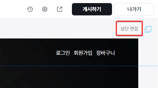 디자인 모드의 오른쪽 상단에 위치한 상단 편집을 클릭합니다.