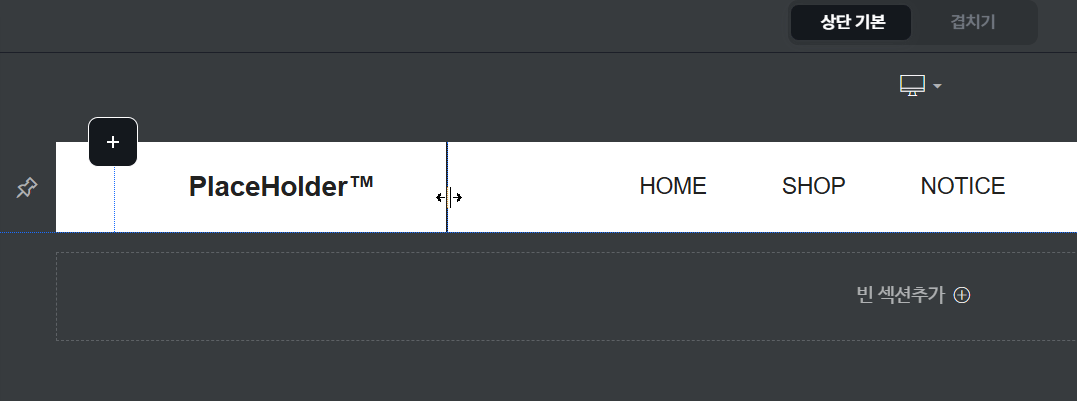 디자인 모드 오른쪽 상단의 상단 편집을 클릭합니다.