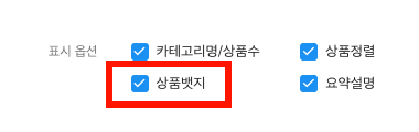 표시 옵션 항목의 상품뱃지를 선택해 주세요.
