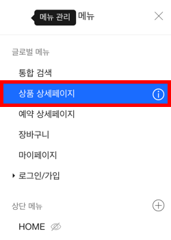 글로벌 메뉴에서 상품 상세페이지를 클릭합니다.