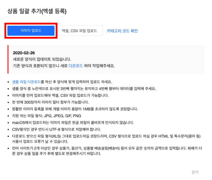 참고: 상품 이미지가 300개를 초과하는 경우, 1회에 300개씩 나누어 업로드합니다.