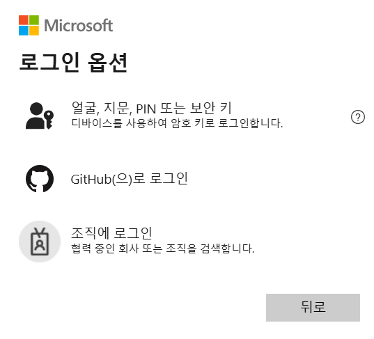 로그인 과정에서 ‘조직에 로그인’ 같은 항목이 보이면, 조직 계정일 가능성이 높습니다.
