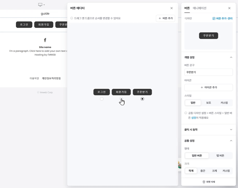 → 업데이트 이후 버튼 위젯 설정화변 예시
