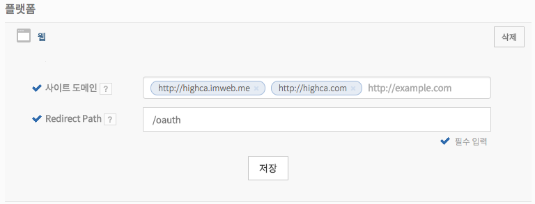 참고: 추가할 도메인이 mydomain.com 이라면 http://mydomain.com/oauth 를 입력합니다. SSL을 사용하는 경우 http가 아닌 https를 사용합니다.