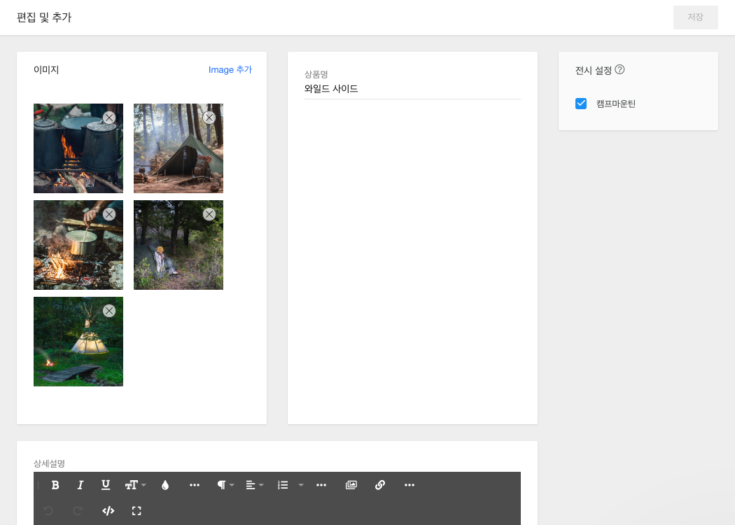 오른쪽 상단의 상품 추가 버튼을 클릭합니다.