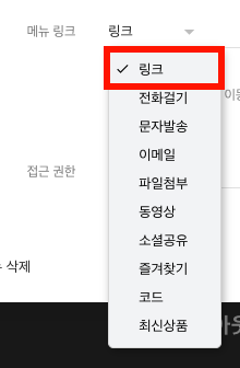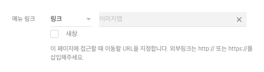 메뉴 링크 항목에서 링크 타입을 링크로 선택합니다.