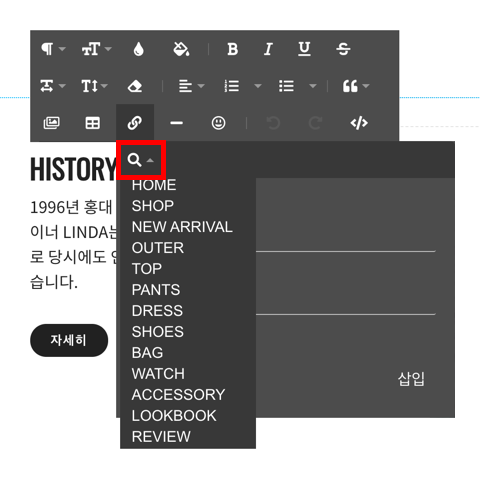 메뉴 설정 창 바깥 영역을 클릭해 링크 삽입을 완료합니다.